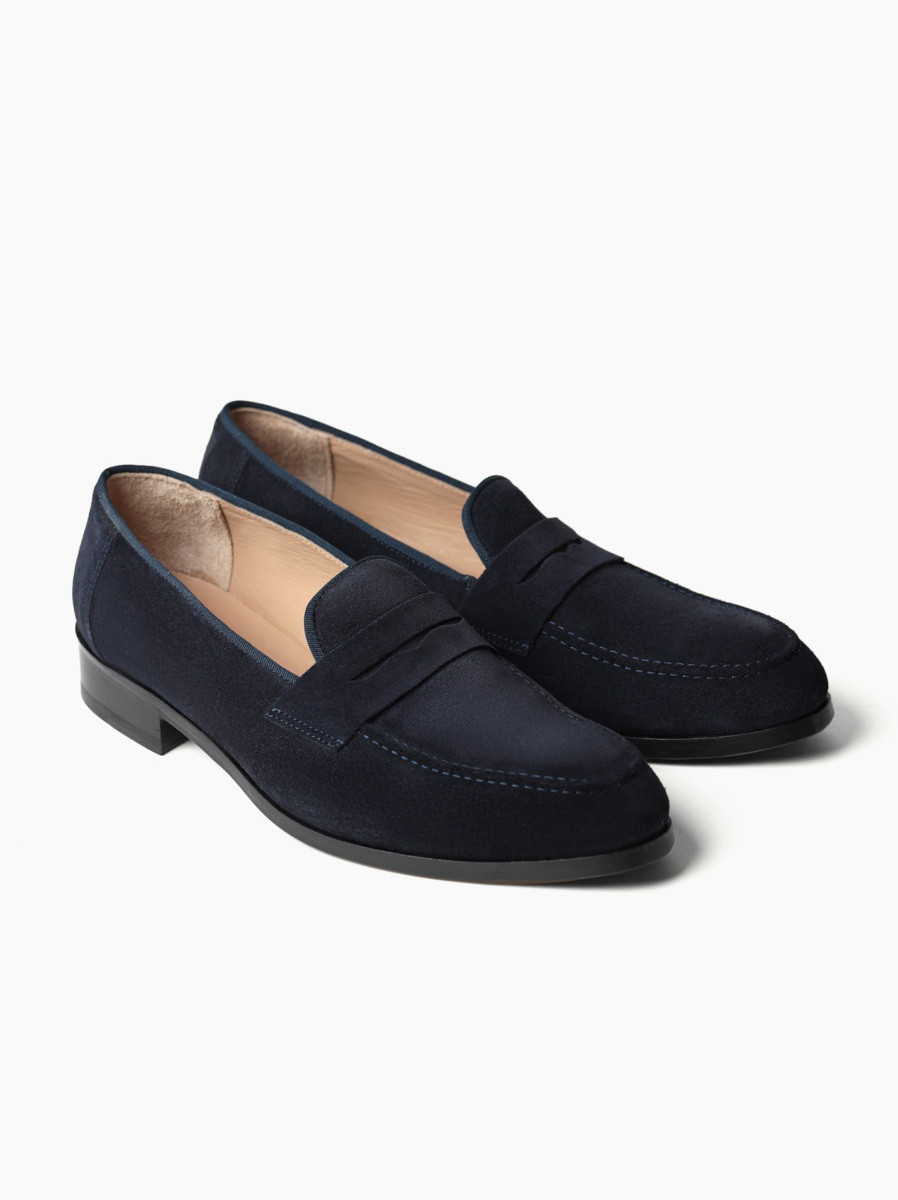 mocasini loafers albastri piele intoarsa