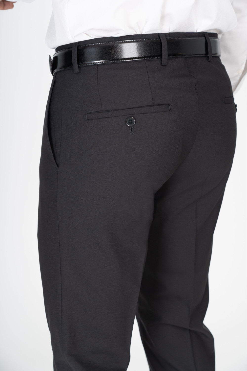 Doua buzunare cu dublu-paspol la spate, inchidere cu nasture