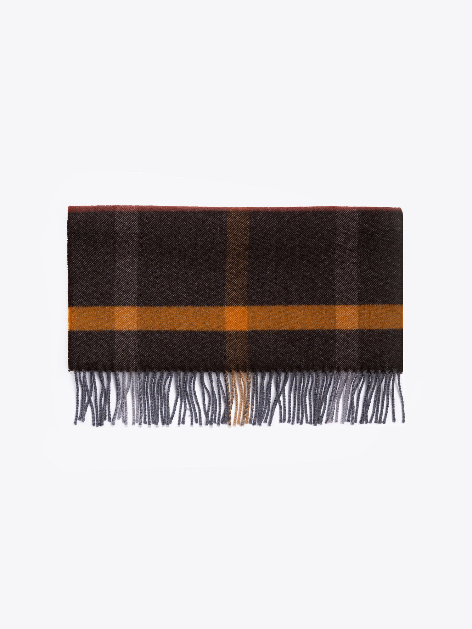 Fular din lana maro cu franjuri